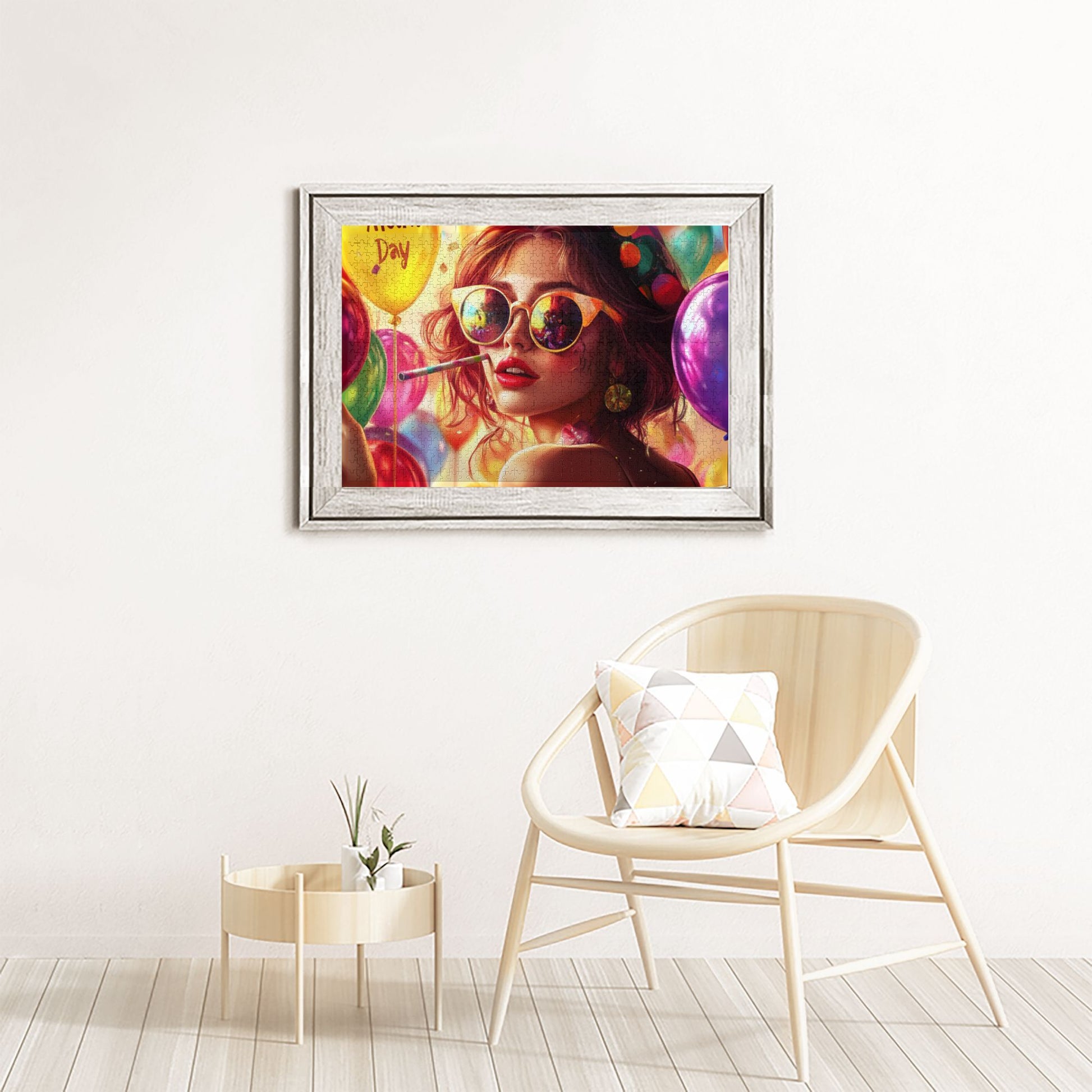 This stunning puzzle features a vibrant and trendy party scene, capturing a stylish girl surrounded by colorful balloons and festive vibes. With its bold colors and unique artistic design, this puzzle is perfect for art lovers and puzzle enthusiasts. Made from high-quality, eco-friendly wooden material, the puzzle offers a smooth assembly experience. The completed puzzle measures 75cm x 50cm, making it an excellent choice for family entertainment, artistic decoration, or as a thoughtful gift.