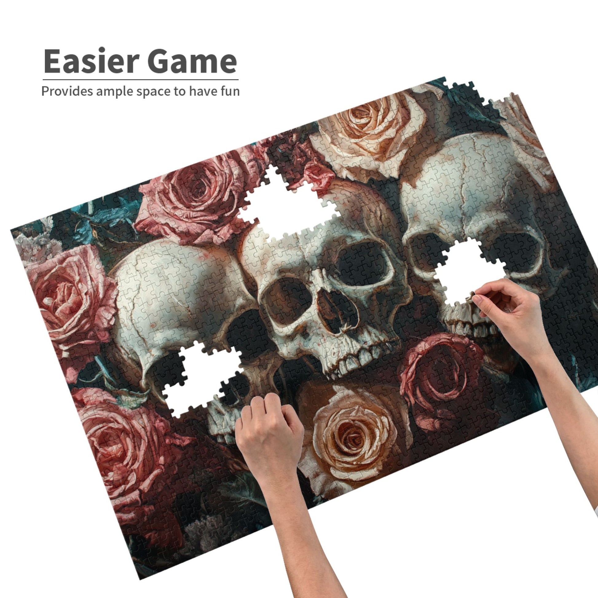 1000-Piece Skull and Rose Art Puzzle - Premium Wooden Puzzle with Precision Fit, 75cm x 50cm