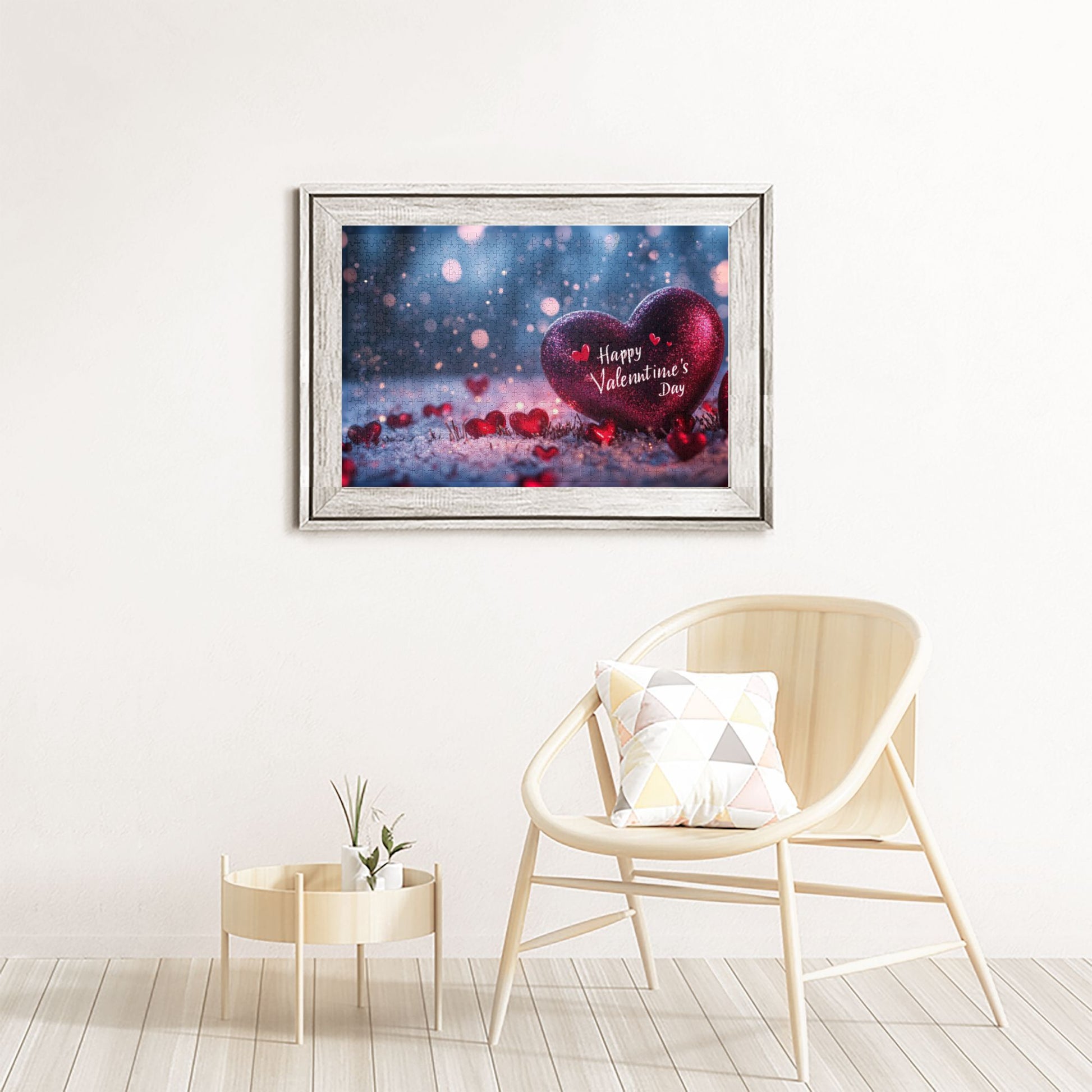 Celebrate love with this romantic Valentine's Day-themed puzzle. Featuring a glittering red heart with the words “Happy Valentine's Day” and a dreamy, soft-focus background, this puzzle is perfect for creating a warm and festive atmosphere. Made from high-quality, eco-friendly wooden material, each piece is precisely cut for a smooth assembly experience. Ideal as a Valentine's gift, personal challenge, or home decoration, the completed puzzle measures 75cm x 50cm and can be framed to add a touch of romantic charm to your space.
